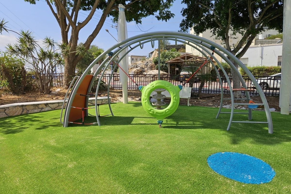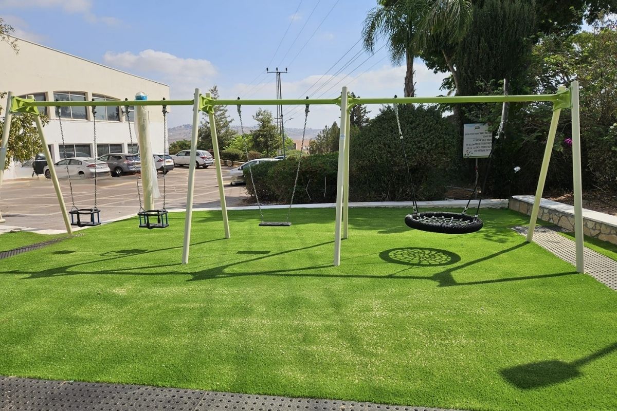 - A generous mix of motion elements, with multiple swings and a carousel.
