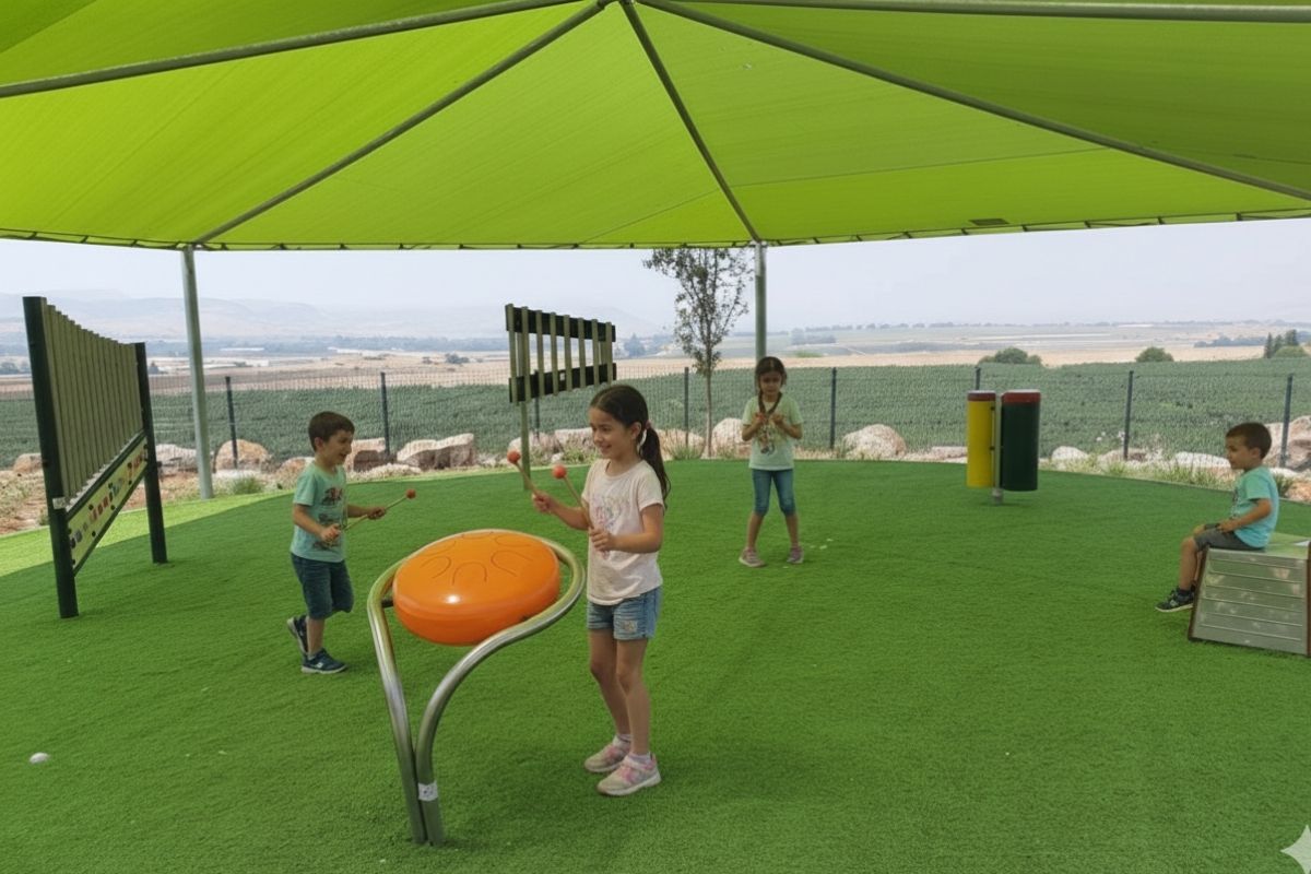 Spring playgrounds delivered a vibrant outdoor music corner for a public setting, designed for everyday use by children and families. A large shade structure supports comfortable play during hot hours, and the area was built with full accessibility. The project was completed as part of a wider program delivering multiple musical play spaces in partnership with a public-sector development organization.