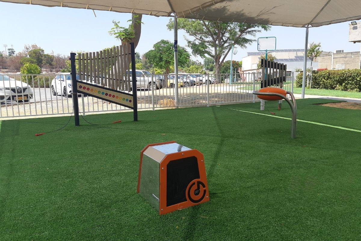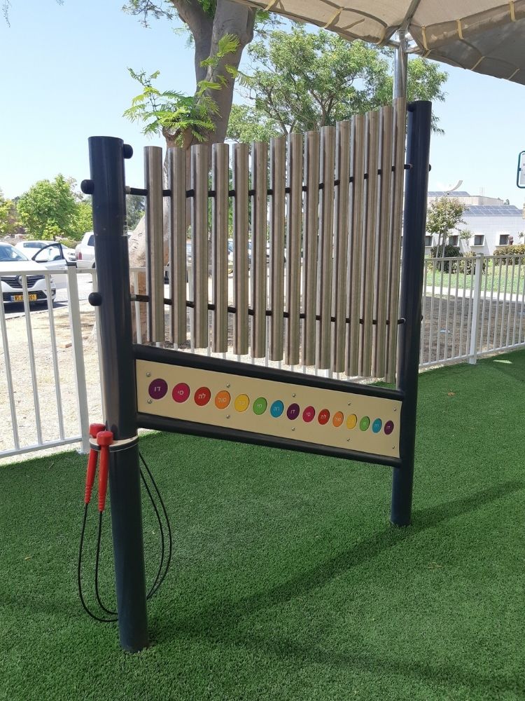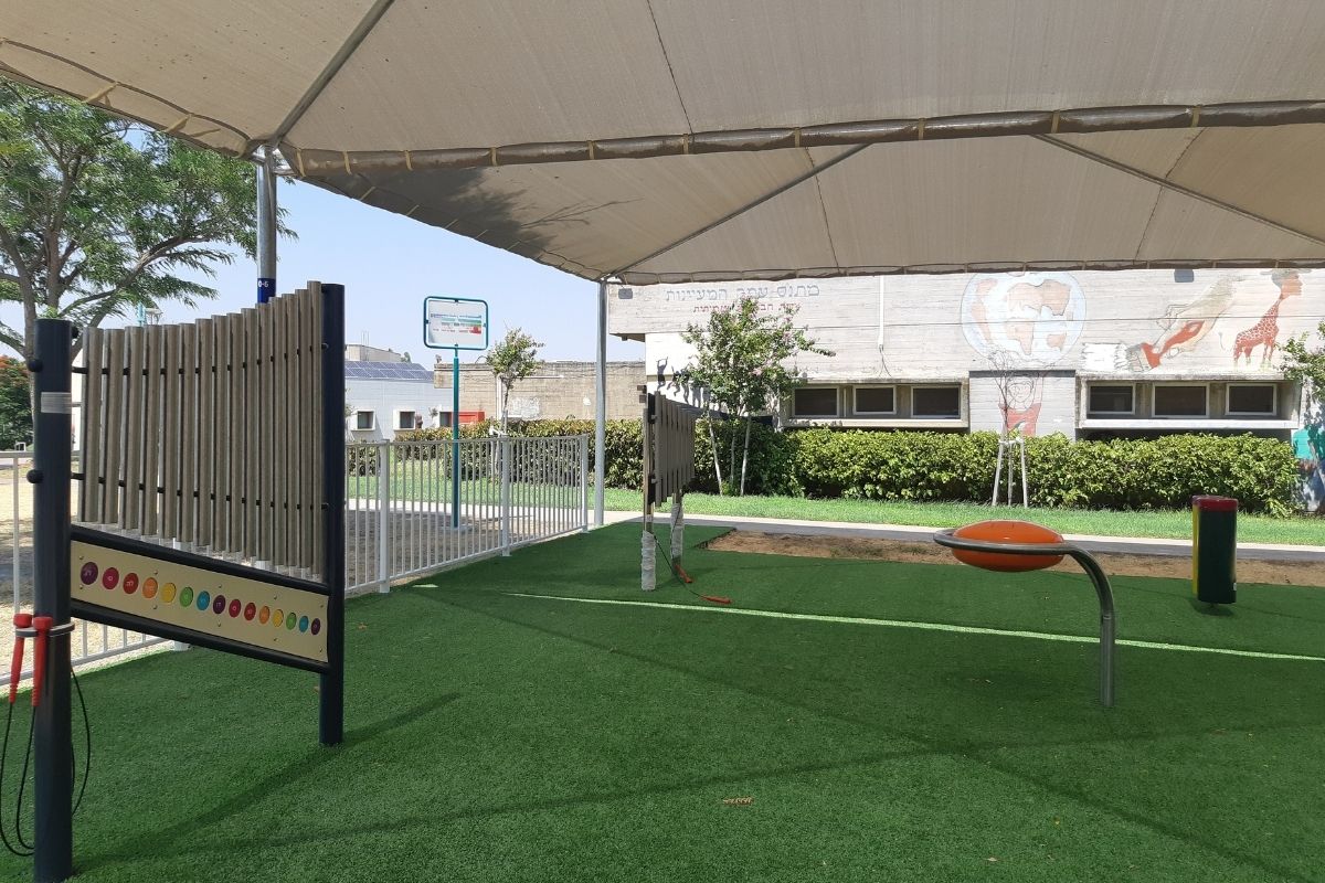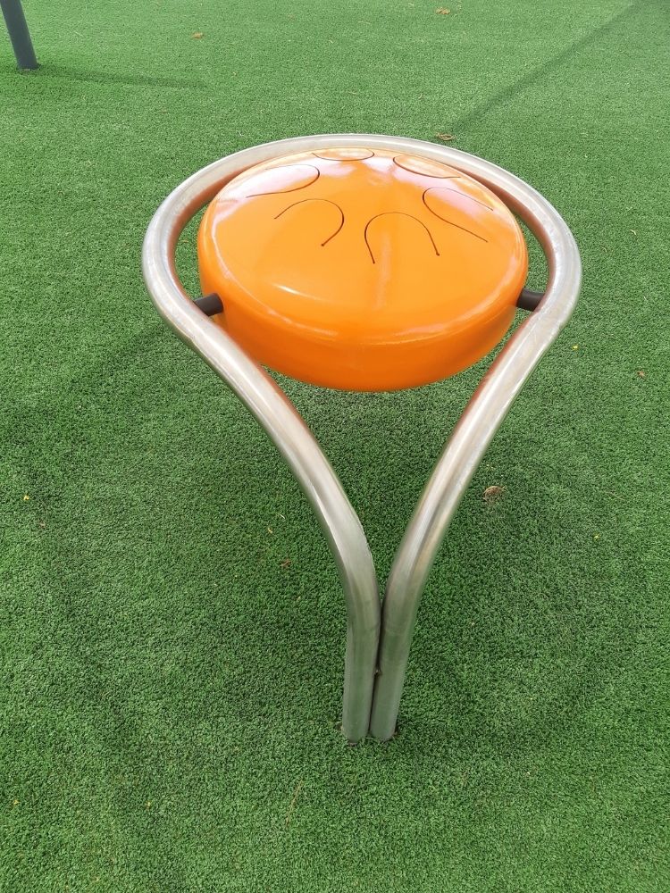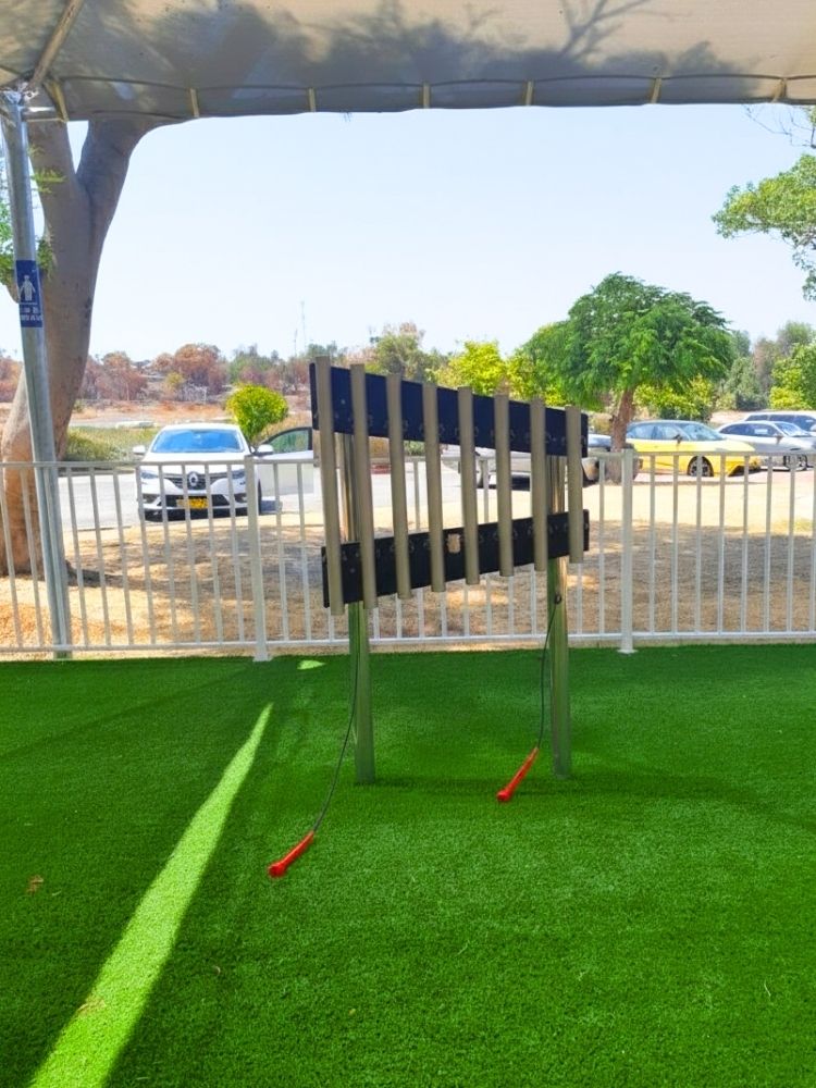 Spring playgrounds delivered a small shaded musical play zone with outdoor instruments for public environments. The area combines multiple music play features with a fenced perimeter, synthetic turf surfacing, and shade coverage to create a pleasant daytime activity space. The concept fits municipalities and schools that want a practical, accessible way to introduce daily music based play in a compact footprint.